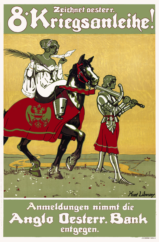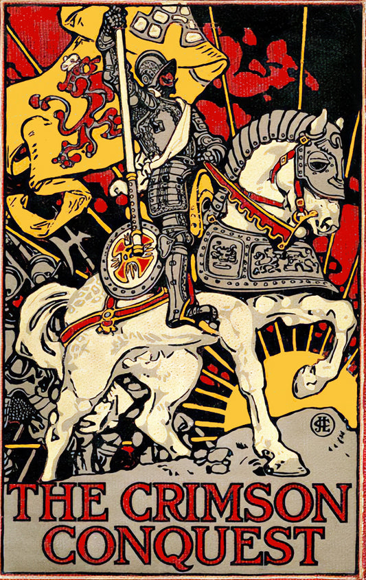 The Crimson Conquest A Striking Vintage Poster Bookplate of Medieval Gallantry and Gothic Grandeur RE680256