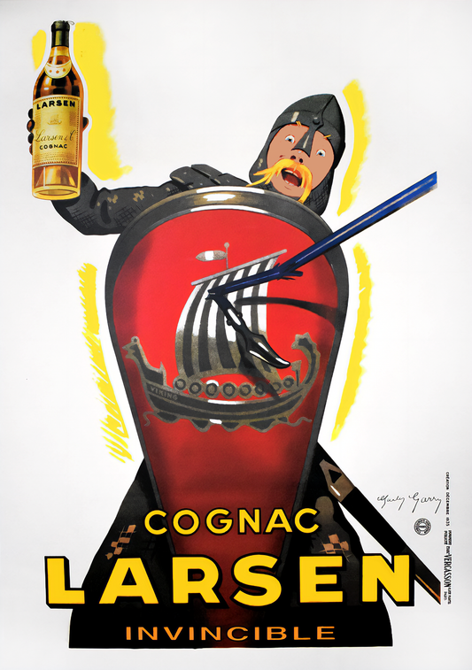 COGNAC LARSEN – INVINCIBLE A Vintage Advertising Poster That Roars with Viking Spirit and Unbreakable Charm RE680026