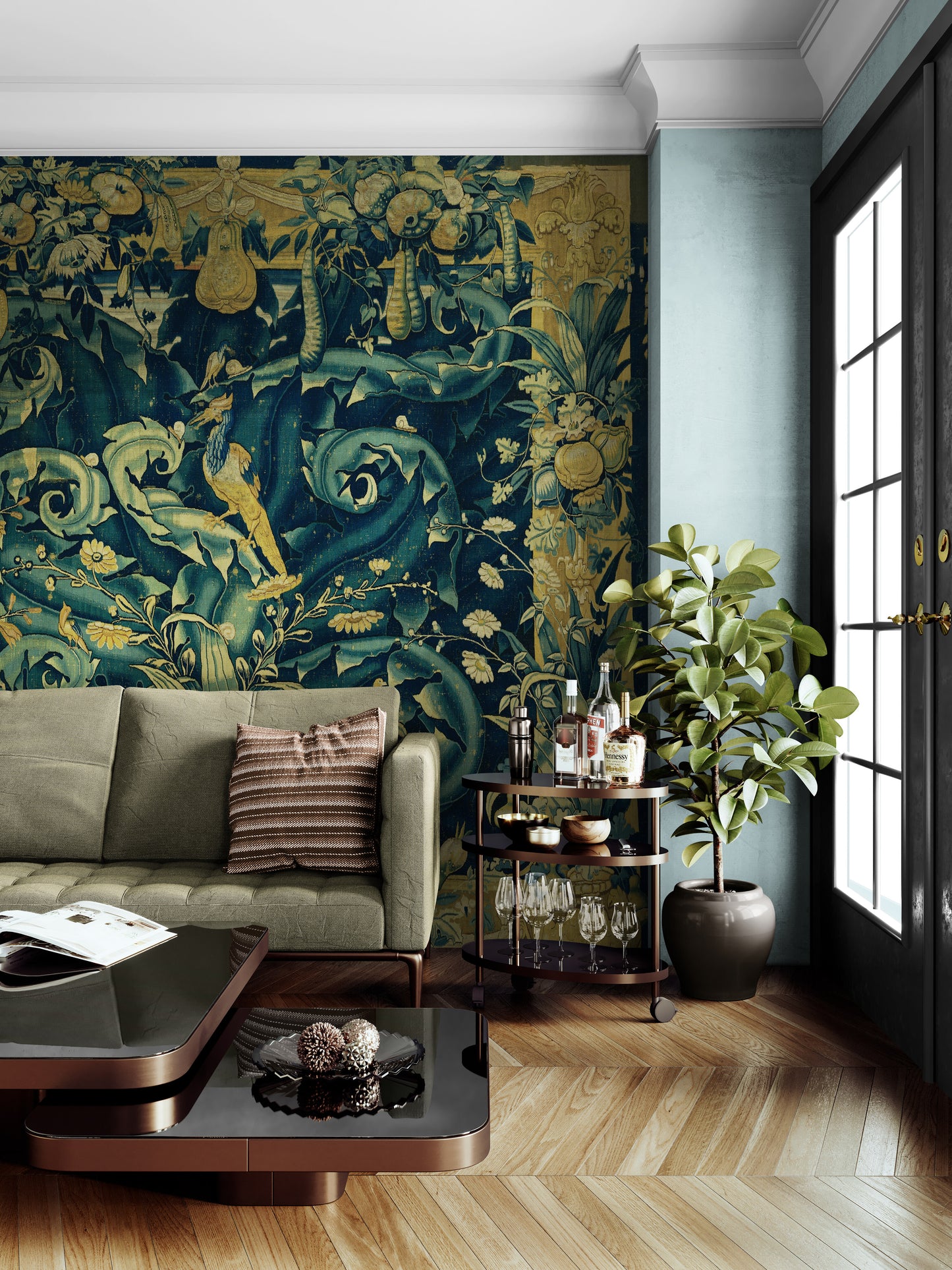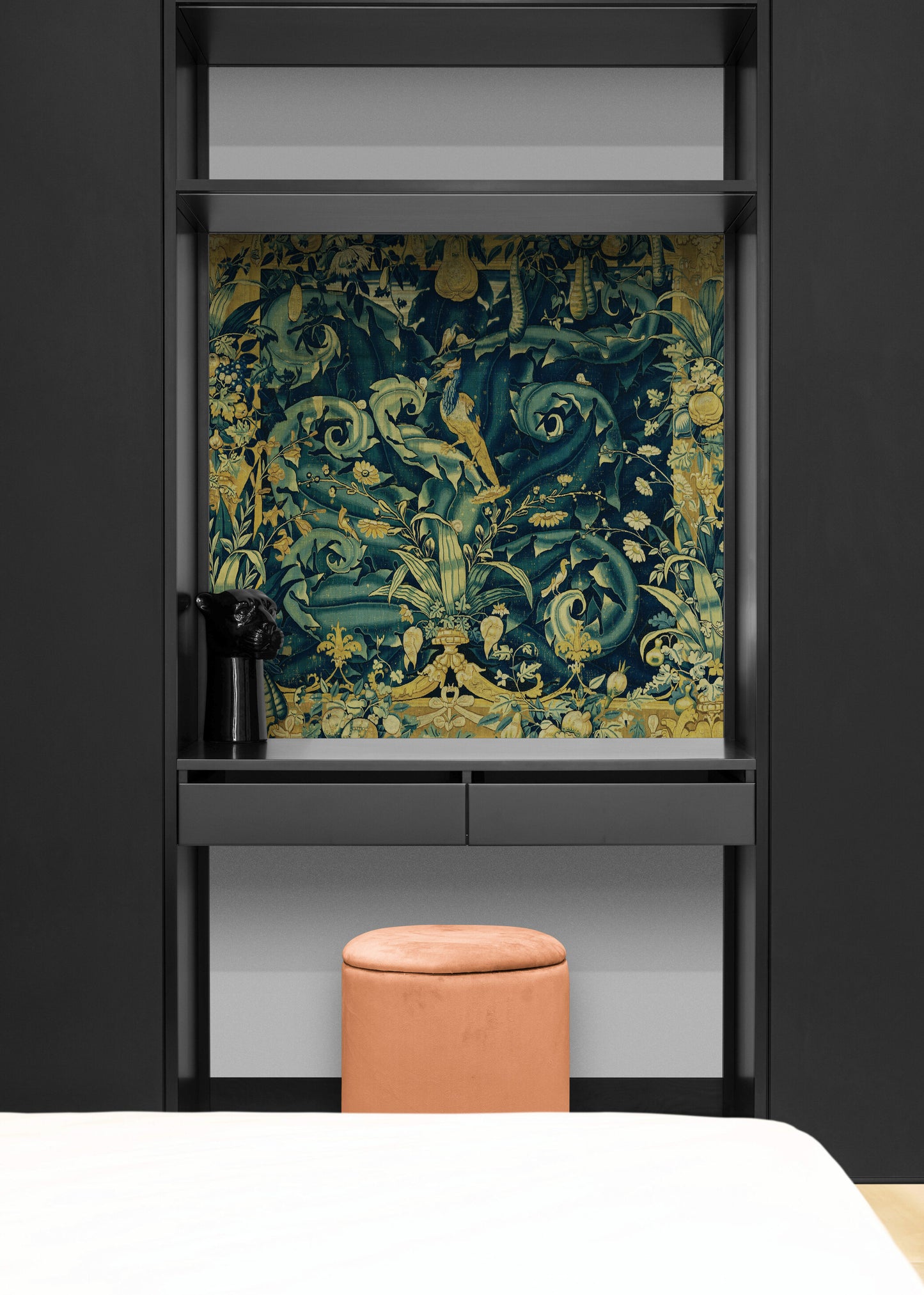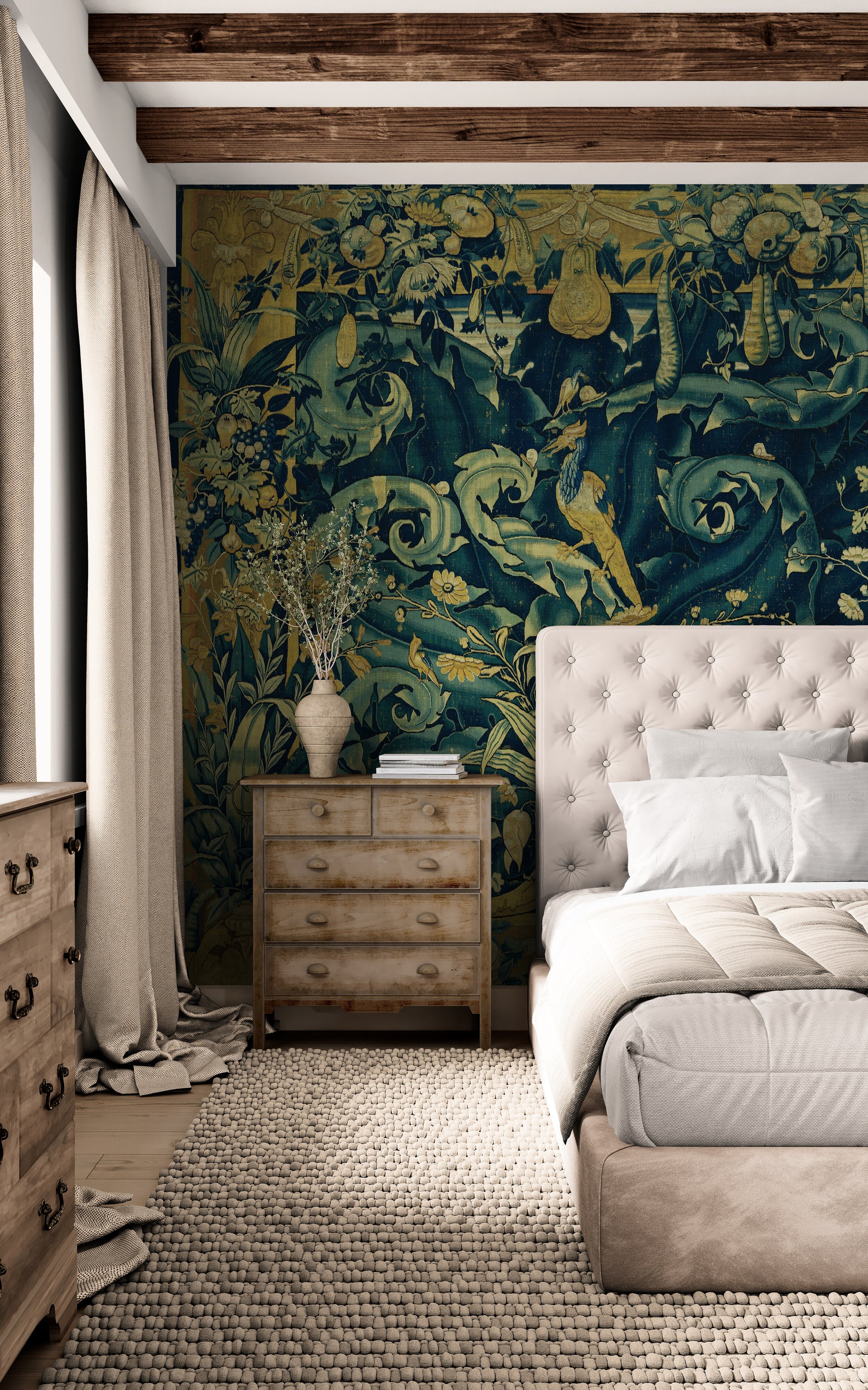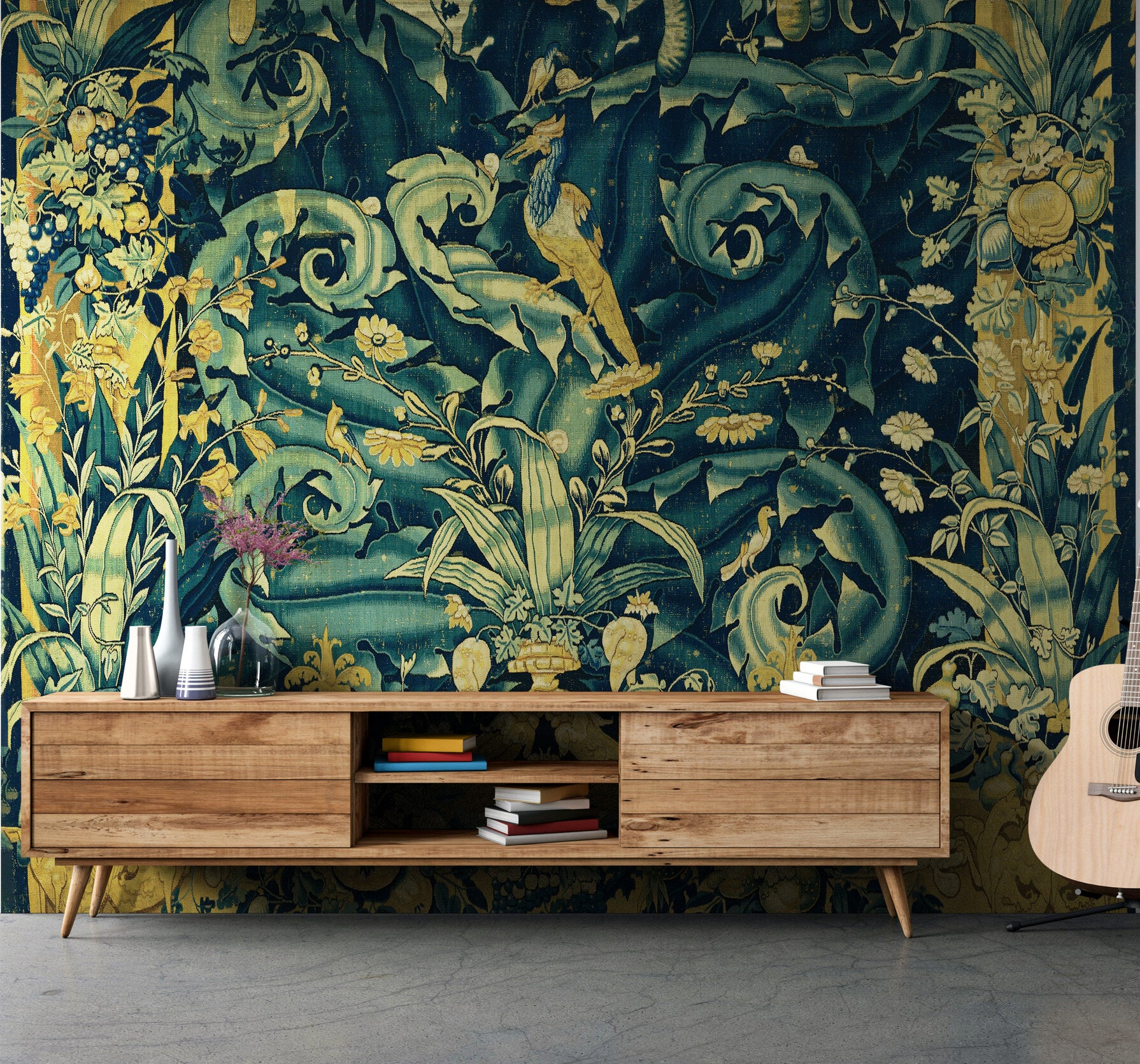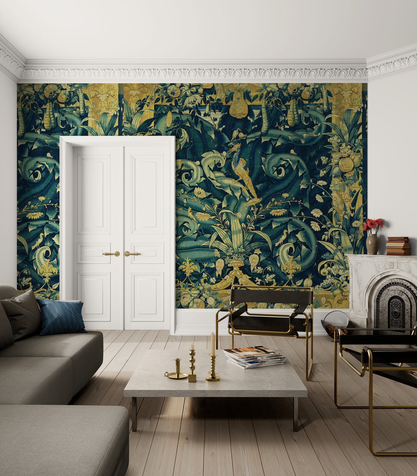 This type of verdure tapestry, with its lush depiction of plant life, was all the rage in the 16th and 17th centuries, particularly in the esteemed weaving workshops of Brussels and Aubusson. These tapestries were highly sought after for their ability to bring the tranquility and beauty of the outdoors into the grand halls and chambers of Europe’s nobility. The large leaf design, often referred to as "feuilles de choux" (cabbage leaves) or "feuilles d'aristolochia," became a hallmark of this period, celebrated for its dramatic and luxuriant representation of nature.