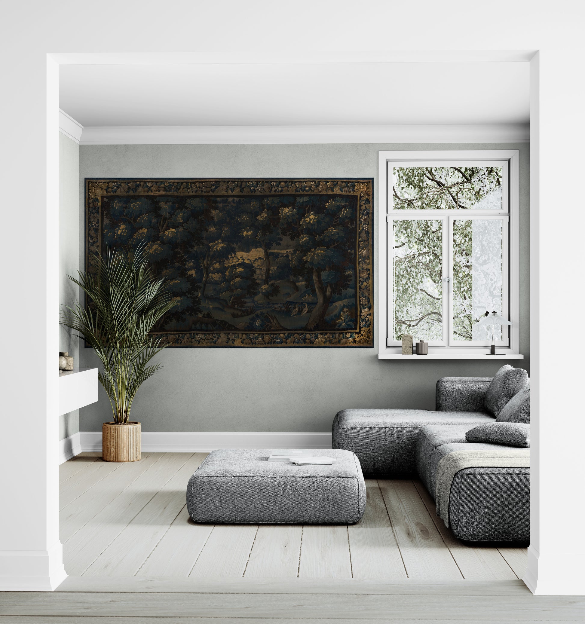 Whether you're decorating a living room, study, or even a bedroom, the Dark Verdure tapestry has a versatile charm. It can anchor a minimalist space, offering depth and warmth, or complement more traditional interiors with its timeless appeal. It offers the kind of aesthetic transformation that turns your home into a retreat—a place where your senses can unwind and where guests will inevitably be drawn into thoughtful conversations about art, history, and beauty.
